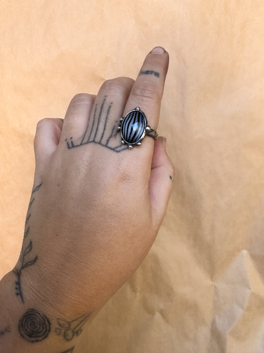 ashy blue wide band ring
