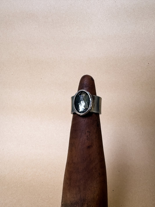 faceted gunmetal wide band ring