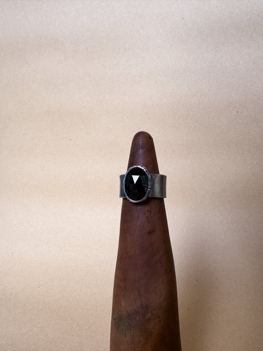 faceted black wide band ring